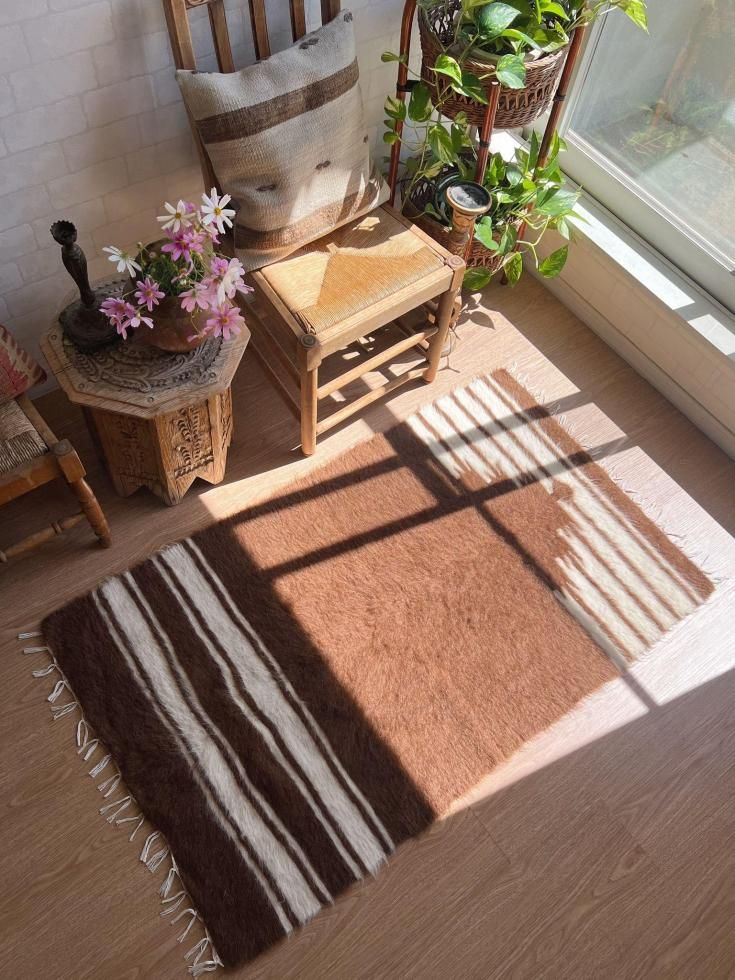 柔らかく軽いのでブランケットとしてや、キリムのように敷物にしてもお洒落です。