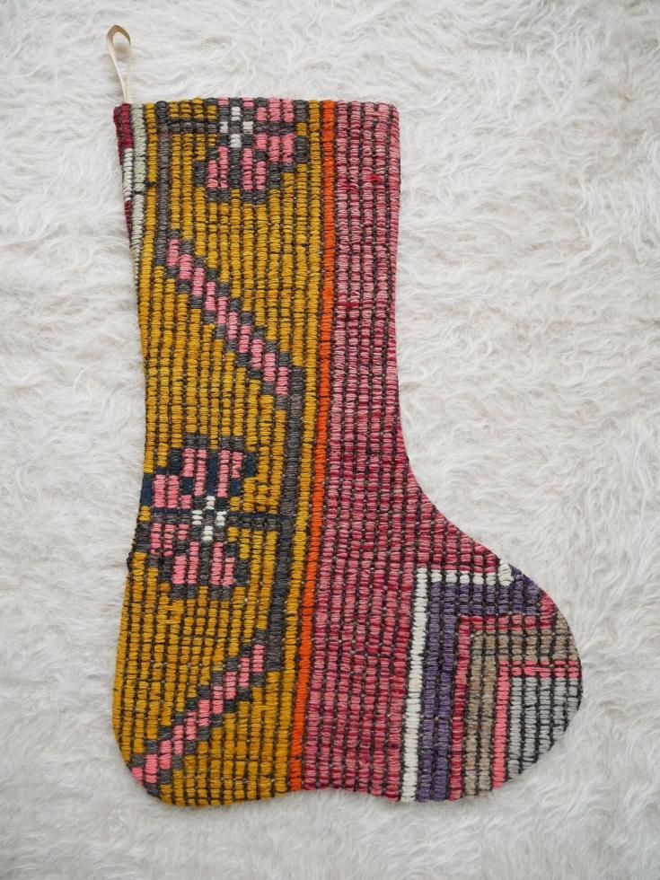 こちらはムットのズリ織のキリムを使用した暖かな地域ならではの温かみのある色味が魅力のクリスマスストッキング♪